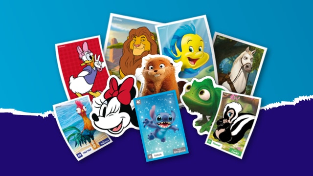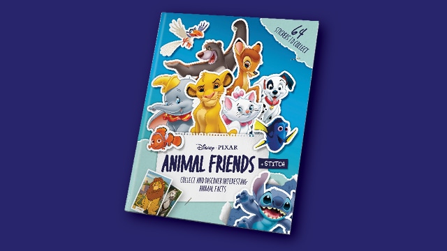 Discover our exclusive __Disney & Pixar Animal Friends Collection__ ! Bring the magic of Disney and Pixar home for family fun. Collect all __64 unique Disney & Pixar stickers__ of beloved animal characters. Each sticker adds magic to your __Disney Animal Friends album__ , a world of __family engagement__ with recipes , games, and trivia. Create memories and enjoy time together. Add 5 adorable, __exclusive plushy keychains__ , each a different Disney & Pixar animal friend, for just __$5 each__ . These charming companions are perfect for your collection and carrying the magic. Don't miss this __Disney-exclusive magic__ ! These limited-edition __Disney & Pixar stickers and plushies__ are here for a short time. Start your __collection__ today and bring the enchanting world of Disney & Pixar Animal Friends home. Collect now and fill your home with joy!